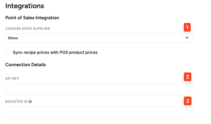 To complete the setup, you will need your Mews API Key and Register ID. If you don't know where to find these, please consult the Mews support team.