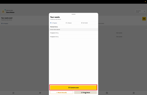 Step 7: When you’re done, tap Finished Waste to complete the event and register the waste.