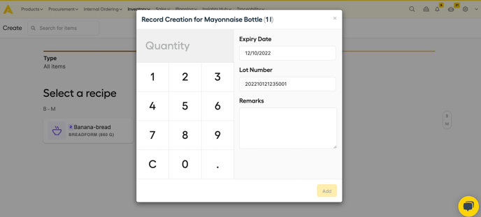 When you click “Save,” the ingredients used for this recipe will be deducted from your stock.